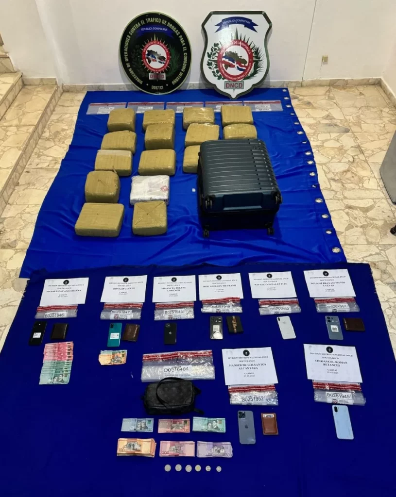 Además, se ocuparon tres vehículos, 22,595 pesos dominicanos, varios celulares, documentos personales y otras evidencias.