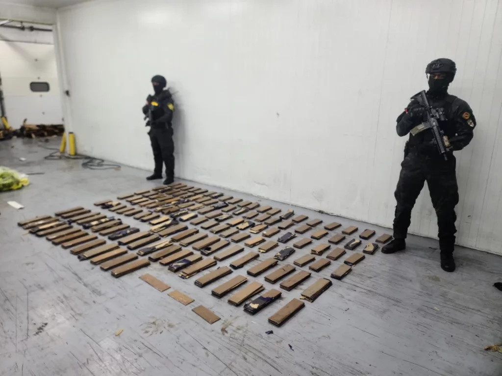 En presencia de un fiscal se procedió a abrir el contenedor, cargado de bananos, en cuyo interior se ocuparon 111 cajas de cartón, conteniendo un doble fondo en los laterales, con 663 láminas, con un peso total de 83.25 kilogramos de cocaína, según el análisis del Instituto Nacional de Ciencias Forenses (INACIF).
