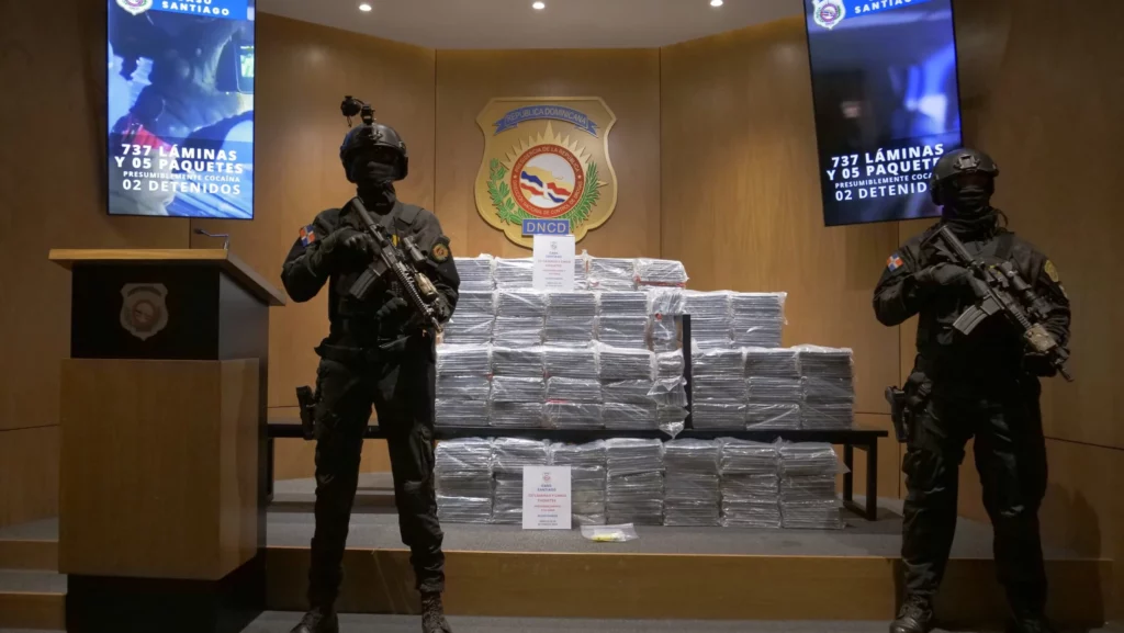 Santo Domingo.-Agentes de la Dirección Nacional de Control de Drogas (DNCD) y miembros del Ministerio Público ocuparon 737 láminas y cinco paquetes presumiblemente cocaína, así como armas y dinero en efectivo, en una operación conjunta desarrollada en la ciudad de Santiago.