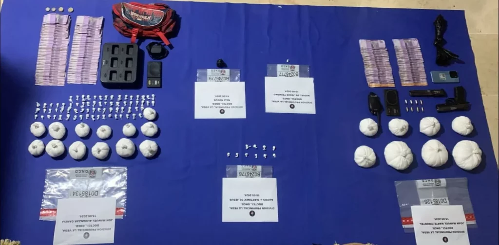 Los organismos oficiales, ocuparon además 08 armas de fuego, 25 cuchillos y machetes, 11 vehículos, 71 motocicletas, 361 celulares, 32 radios de comunicación, 97 balanzas, dos máquinas tragamonedas, así como RD $755, 543 pesos dominicanos, US $6,960 dólares estadounidenses y otras evidencias.