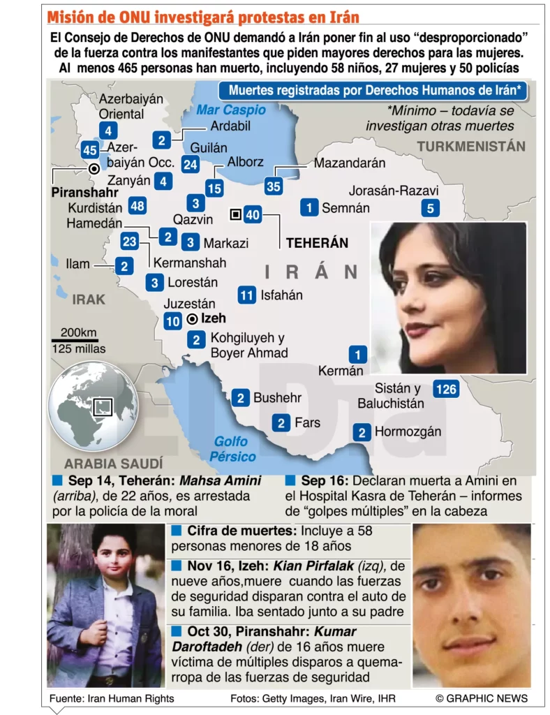 Las movilizaciones que comenzaron por la muerte de la joven kurda de 22 años, pero que han evolucionado y ahora los manifestantes piden el fin de la República Islámica fundada por el ayatolá Ruholá Jomeiní en 1979.