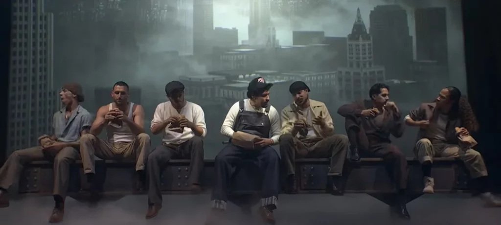 Para está presentación el Conejo Malo estuvo acompañado de seis bailarines, y se utilizó una escenografía que evocaba una fotografía icónica de obreros neoyorquinos almorzando sobre una viga de acero en lo alto de Manhattan.
