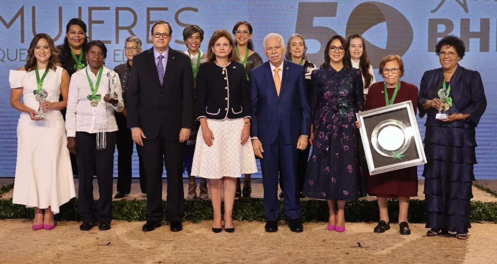 Santo Domingo.-El Banco BHD celebró la séptima edición del premio Mujeres que Cambian el Mundo en la que resultó ganadora del primer lugar, Seneida Vargas (La Negra), por su trabajo de promoción e impulso de acciones y proyectos comunitarios que vinculan a las mujeres y a sus familias con la defensa de sus derechos en la producción agropecuaria y el desarrollo sostenible de Arroyo Cano en la provincia San Juan, quien recibió un millón de pesos.