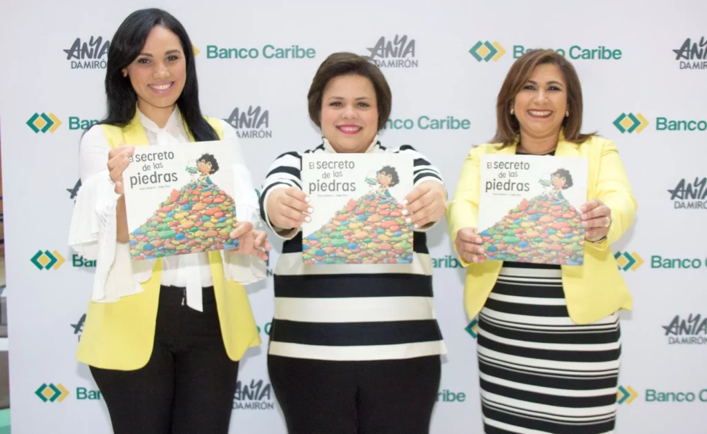 Santo Domingo.- Banco Caribe presentó “El Secreto de las Piedras” un nuevo libro de la escritora de literatura infantil y la autodenomina “cuenta cuentos”, Anya Damirón, que busca motivar a los niños de 2 a 9 años a crear planes, a ser creativos y creer en ellos mismos, incentivando el ahorro desde la primera infancia, el hábito de la lectura y los buenos valores.
