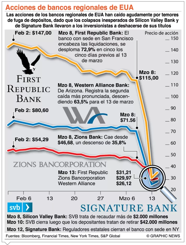 El sector bancario estadounidense está viviendo varias jornadas de vértigo desde que el pasado viernes las autoridades intervinieran el banco californiano Silicon Valley Bank (SVB), el decimosexto banco estadounidense por capitalización.