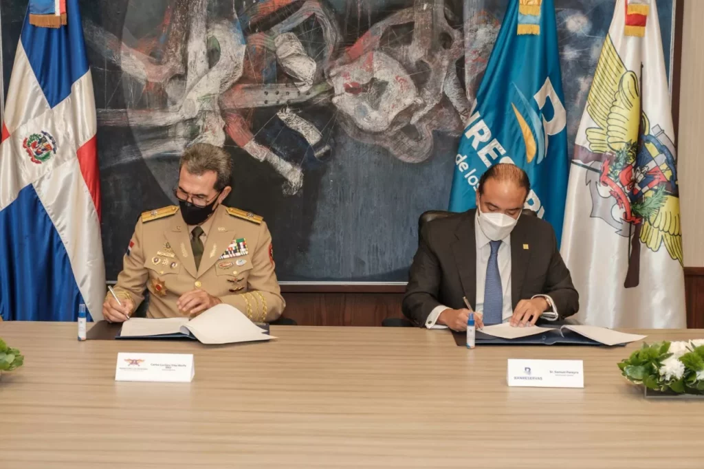 El acuerdo fue firmado por el administrador general de Banreservas, Samuel Pereyra, y el ministro de Defensa, teniente general Carlos Luciano Díaz Morfa, en la sede principal de la institución financiera.
