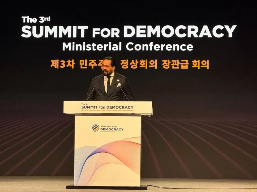 Santo Domingo.- Bartolomé Pujals, director general de la OGTIC y director ejecutivo del Gabinete de Innovación, participó como jefe de delegación en representación del Gobierno dominicano en la Tercera Cumbre por la Democracia: "Inteligencia artificial, tecnología y democracia, democracia para las futuras generaciones” en Seúl, Corea del Sur, evento que reúne a los responsables gubernamentales y miembros de la sociedad civil para tratar temas sobre el retroceso democrático y las incidencias de las nuevas tecnologías en el mismo.
