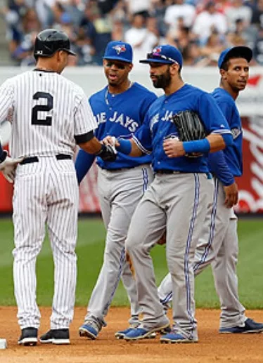 El dominicano José Bautista reconoció Derek Jeter en medio del juego del domingo, junto a Anthony Gose y el novato Dalton Pompey desfilaron hacia donde Jeter para rendirle homenaje al Capitán, quien se retirará tras la conclusión de esta temporada, su vigésima en Grandes Ligas.