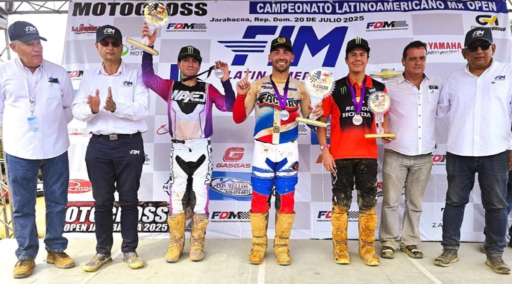 Jarabacoa. – El sensacional piloto dominicano, Franklin Nogueras Jr, se coronó campeón del Latinoamericano de Motocross MX Open, corrido el pasado domingo en la moderna pista internacional, Corocito MX Park, donde los criollos Darnell Lantigua y Jeffrye Taveras, lograron quinto y sexto lugares respectivamente.