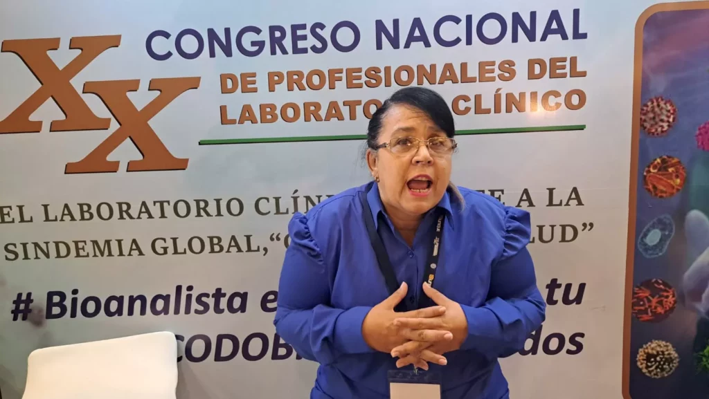 La licenciada Marión Echenagucia, de Venezuela, resaltó la importancia de la realización de exámenes como la prueba Dímero D, la cual permite detectar diferentes anomalías asociadas a los coágulos en la sangre.