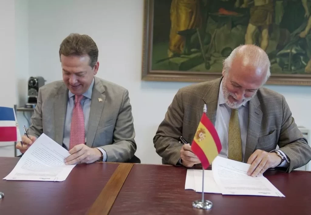 Madrid, España.- El ministro de Industria, Comercio y Mipymes, Víctor -Ito- Bisonó, firmó un memorando de entendimiento con la Asociación Nacional de Fabricantes de Bienes de Equipo en España (SERCOBE), que representa a más de 400 empresas y grupos industriales de ese país, el cual establece un vínculo en materia de financiamiento, inversión y cooperación empresarial con la República Dominicana.