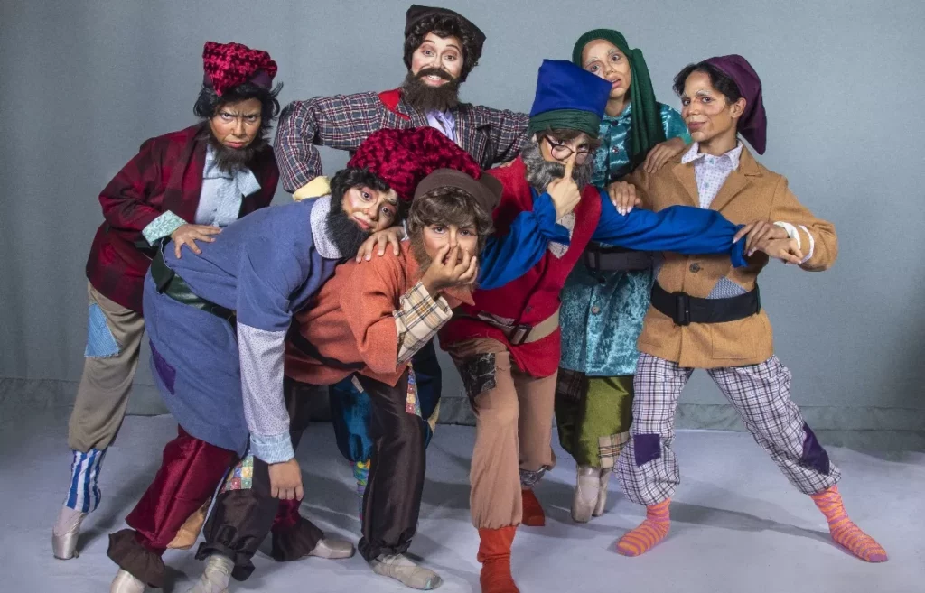 Los siete enanitos fueron interpretados con gracia por las bailarinas Alicia Diloné, Alba Cabrera, Samira de los Ángeles, Loren Mercado, Sofía Peña, Cristal Santos y Ernesto Trinidad.