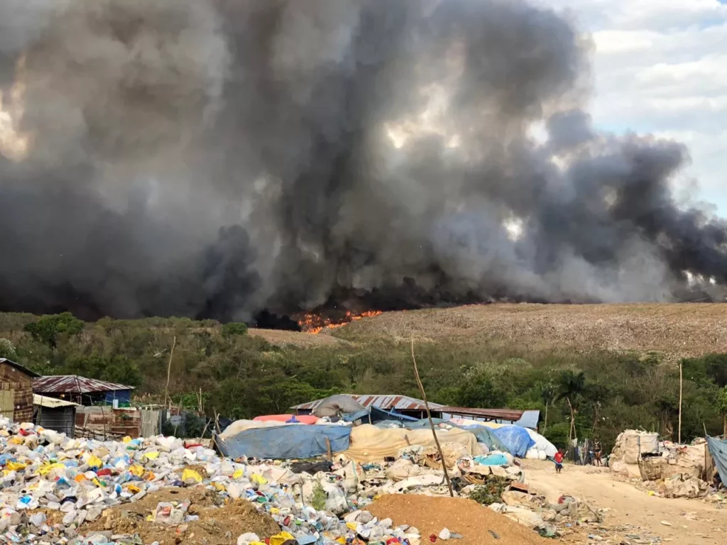 Además de la humareda, el incendio ha propagado un hedor a basura quemada y hollín que ha estado cayendo en algunos sectores aledaños.
