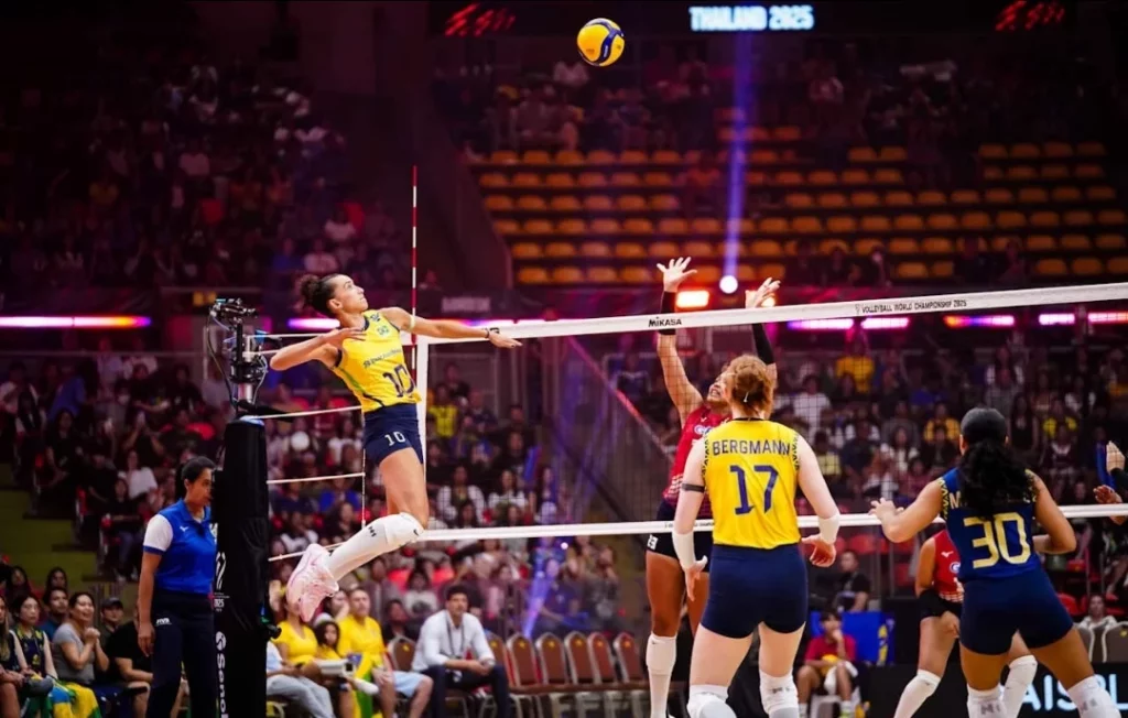BANGKOK, THAILANDIA. El sexteto de Brasil, número dos en el ranking mundial, derrotó este domingo 3-1 (18-25, 25-12, 25-20 y 25-12) a la República Dominicana, en los octavos de final para avanzar a los cuartos de final y así mantener su invicto (4-0) en el Campeonato Mundial de Voleibol (FIVB).