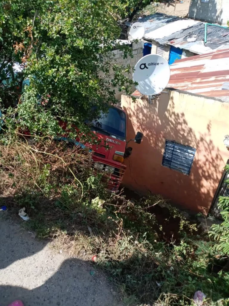Los Rieles. – Un camión de recogida de basura del Ayuntamiento Municipal de Haina cayó por un tramo afectado en el sector Los Rieles en Cabón, Piedra Blanca de Haina afectando a dos viviendas.