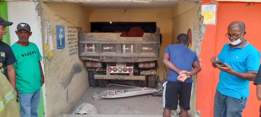 Santo Domingo.- Un camión penetró a un centro de servicios de internet la tarde de este viernes en el sector La Ciénega en el KM 14 de la Autopista Duarte, tras supuestamente fallarle los frenos al conductor.