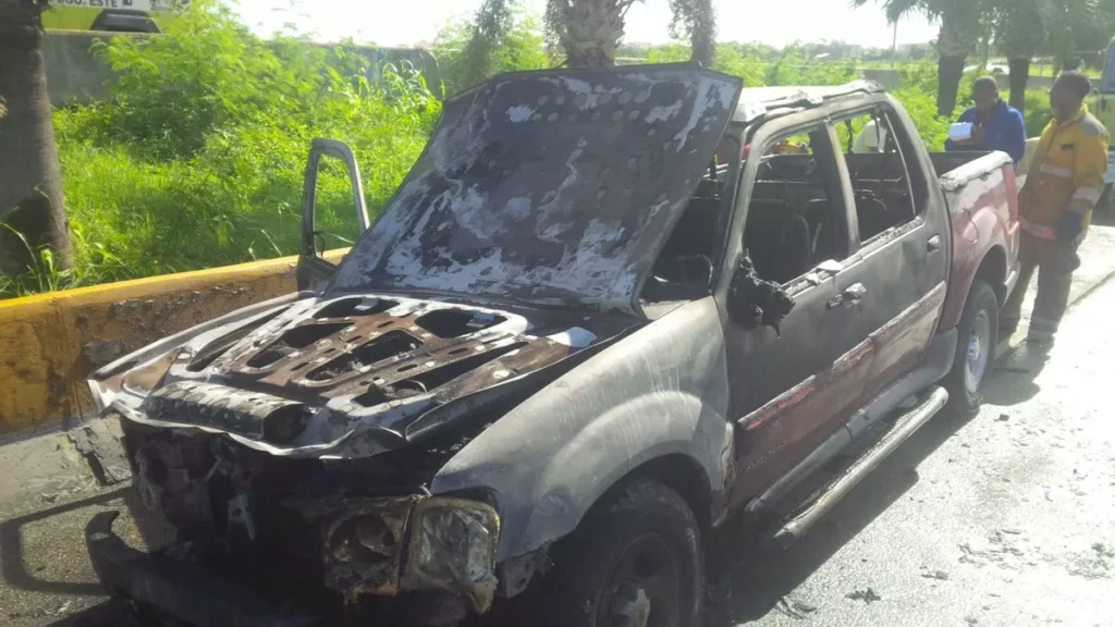 Las Camioneta Ford Explorer se incendió en dirección Este-Oeste en Las Américas, próximo a los Tres Ojos, informó Diego Pesqueira, vocero de La Autoridad Metropolitana de Transporte (AMET).