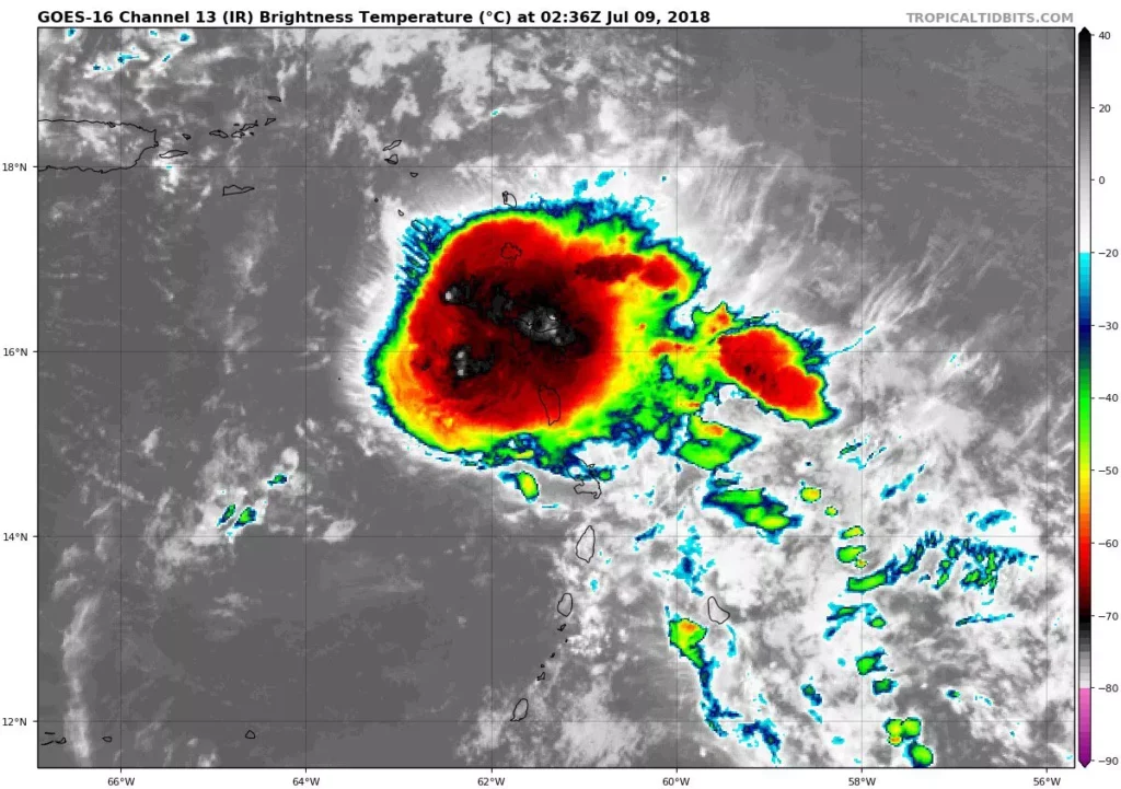 La Onamet se mantiene dando seguimiento a los remanentes de Beryl, los cuales se localizan a unos 200 kilómetros al sureste de San Juan, Puerto Rico, los vientos máximos sostenidos siguen de 65 km/h y se mueve hacia el oeste/noroeste a unos 43 km/h.