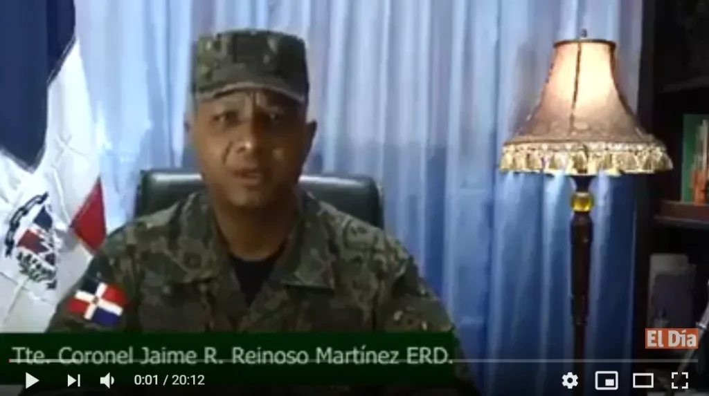El ministro de Defensa, teniente general Rubén Dario Paulino Sem, afirmó que el oficial fue cancelado por violar la Constitución de la República y la Ley Orgánica de las Fuerzas Armadas 1339-13. "Es una cancelación de nombramiento totalmente deshonrosa y no tiene más consecuencias, está siendo separado de nuestras Fuerzas Armadas", dijo.