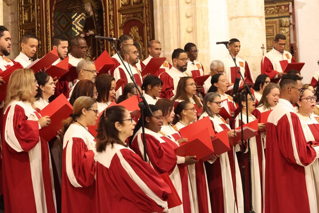 SANTO DOMINGO.-En una solemne ceremonia canónica, matizada por los aires navideños y cánticos como llama de vida, el arzobispo coadjutor de la Arquidiócesis de Santo Domingo, Carlos Tomás Morel Diplán, encabezó la clausura del Año Jubilar 2025 junto al arzobispo Francisco Ozoria y gran parte del clero arquidiocesano.