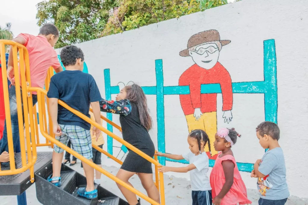 También fueron establecidas las señalizaciones necesarias, un mural para los niños y rampas de acceso al área infantil y de gimnasio.