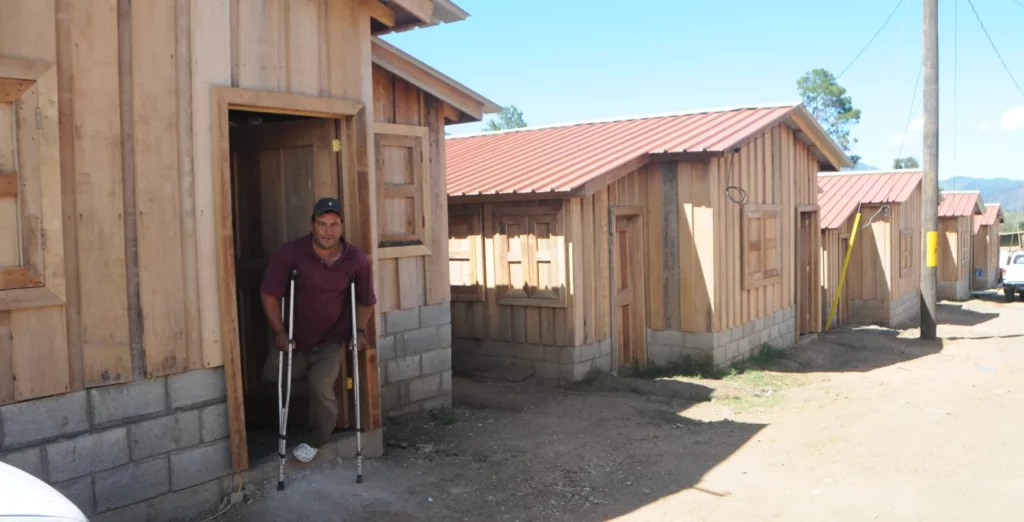 Cada vivienda está siendo levantada con tres líneas de block de altura, madera resistente y aluzinc.