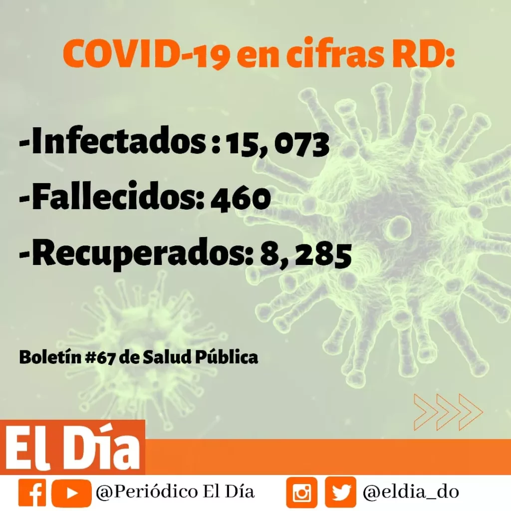 SANTO DOMINGO.- Los casos confirmados de coronavirus en el país aumentaron a 15,073 (272 casos nuevos) y los fallecimientos a 460.
