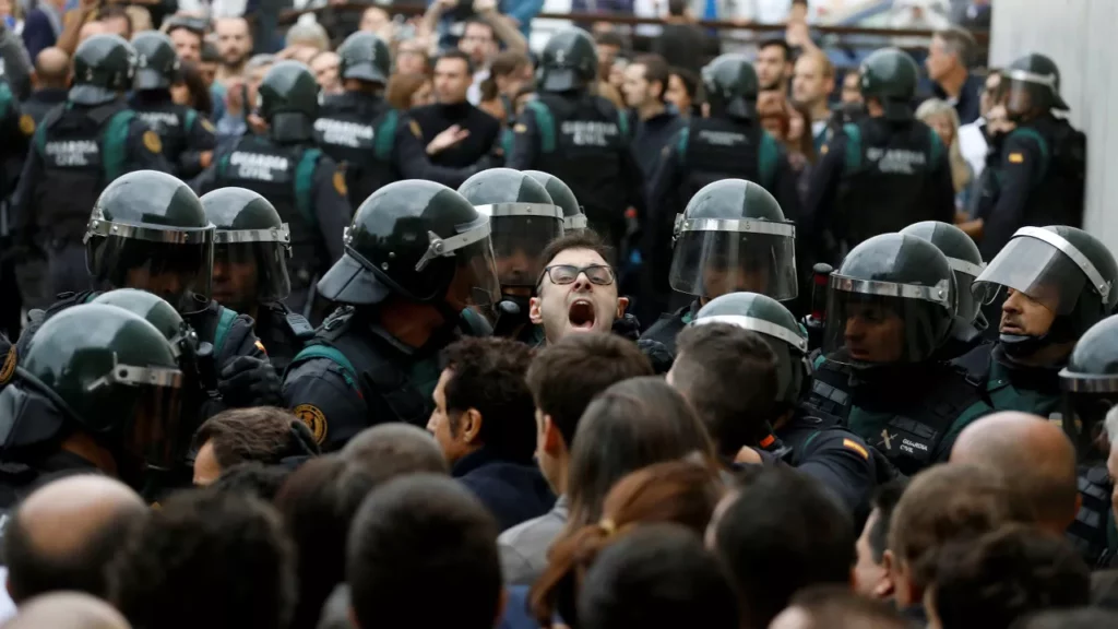 BARCELONA.- Policías antimotines irrumpieron a la fuerza en centros de votación en Cataluña el domingo para tratar de impedir un referéndum independentista y dispararon balas de goma contra varias personas afuera de un colegio asignado como centro de votación.