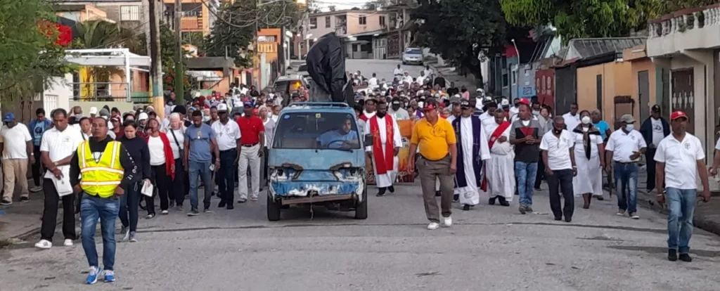 Santo Domingo.- Cientos de católicos de los sectores Sabana Perdida- La Victoria levantaron sus voces este viernes en favor de la preservación del medioambiente y los recursos naturales.