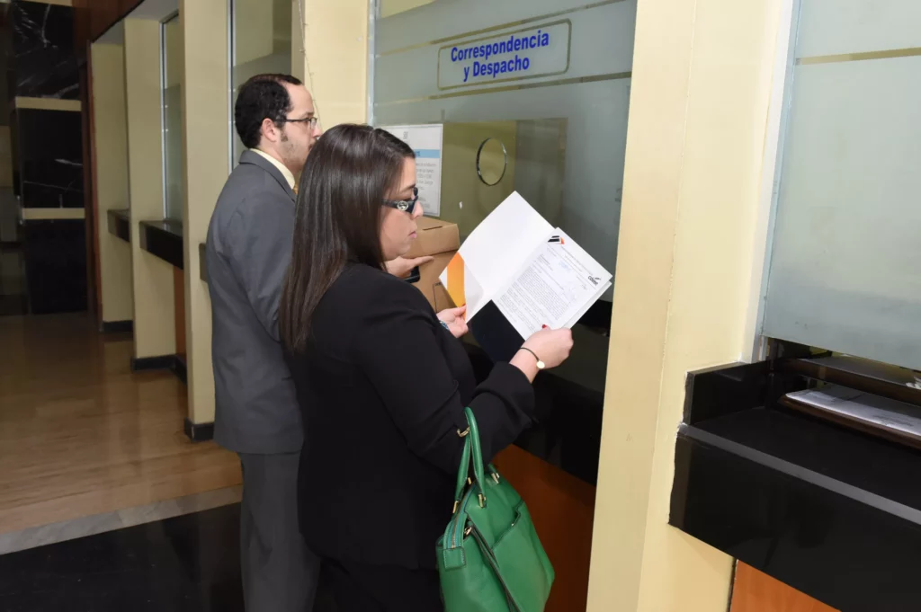 La entrega de los documentos estuvo a cargo de Manuel Batista, subdirector Jurídico, y Leniza Hernández, gerente de Análisis Legal y Cumplimiento de la Dirección Jurídica de la CDEEE.