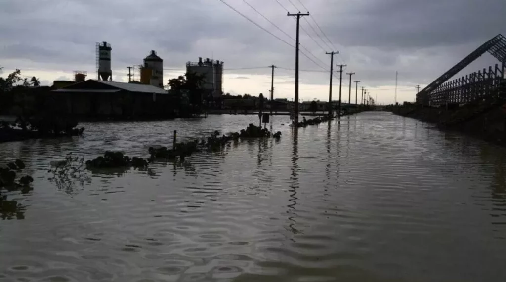 Los puntos elevados incluyen el muelle y la planta, que cuenta con un almacén techado para el carbón. Sin embargo, fotos suministradas por el CNCLL describen el alcance de las aguas en el terreno de la central edificada por el consorcio Odebrecht-Tecnimont-Estrella.
