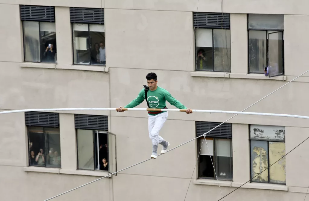 Chile: acróbata camina sobre cuerda a 75 metros de altura