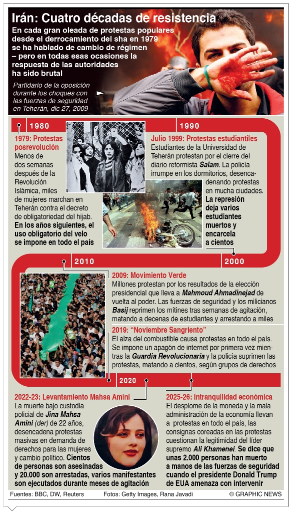 “¡Patriotas iraníes, sigan protestando! ¡Tomen el control de sus instituciones! Guarden los nombres de los asesinos y los responsables de los abusos”, dijo.