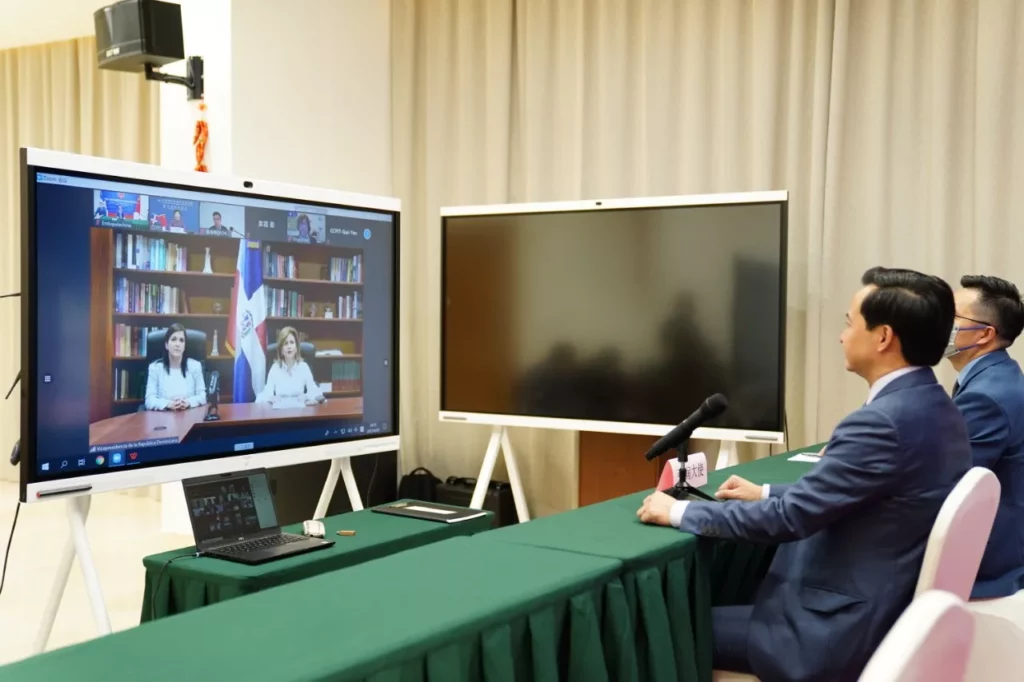 Santo Domingo.- En víspera del tercer aniversario del establecimiento de las relaciones diplomáticas entre China y la República Dominicana, se celebró con pleno éxito el Foro Virtual de Comercio e Inversión Chino-Dominicano, organizado por el Consejo Chino para el Fomento del Comercio Internacional (CCPIT), la Embajada China en la República Dominicana y la ProDominicana, en el cual se firmó la Iniciativa para la Creación del Comité Empresarial Domínico-Chino entre el CCPIT y la ProDominicana.