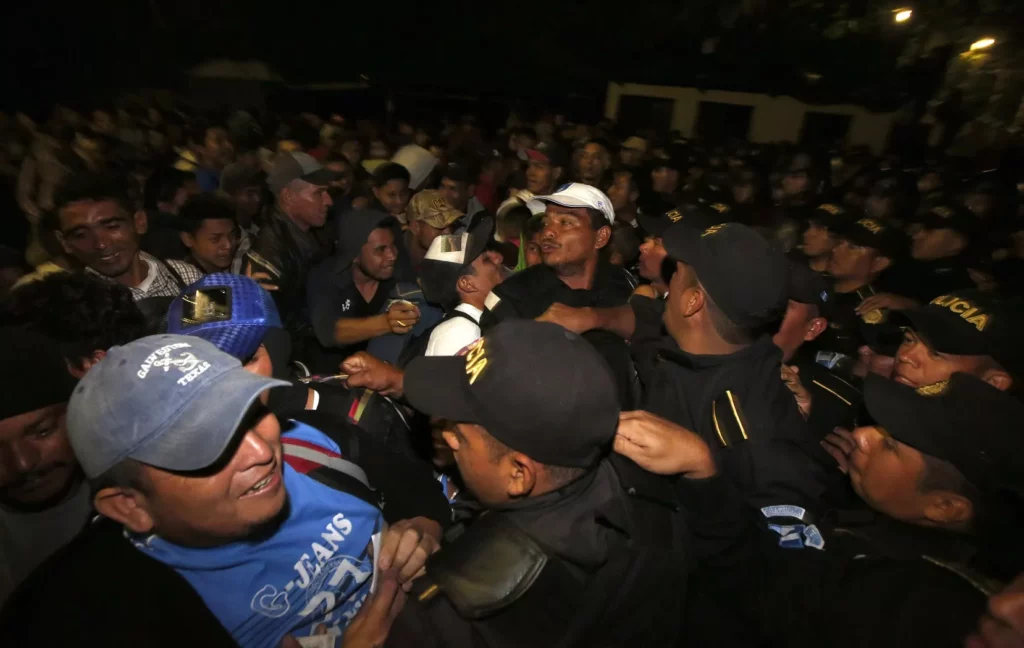 Los migrantes, más de 1.000, según estimaciones, permanecen agolpados frente a los policías, coreando consignas como “Fuera JOH (Juan Orlando Hernández, presidente de Honduras)”, y exigiendo que se les permita pasar a Guatemala para continuar su viaje en su intento por llegar a Estados Unidos.