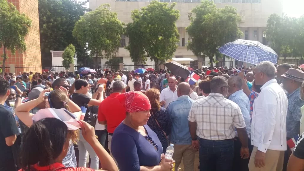 Portando banderas dominicanas y otras de color negro (en señal de luto) y lanzando consignas en contra de una reforma a la Carta Magna, los manifestantes advirtieron que no se quedarán de brazos cruzados ante las pretensiones de los danilistas.