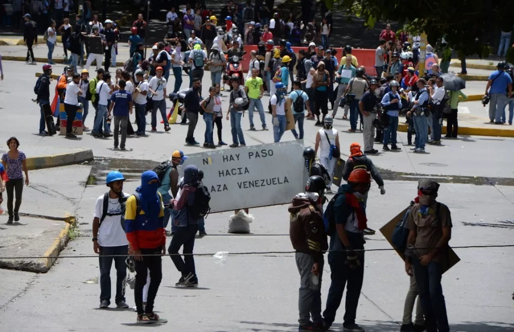 CARACAS, Venezuela. – "¡No hay paso!", gritaban este lunes manifestantes que bloquearon una estratégica avenida de Caracas en nuevas protestas contra el presidente venezolano, Nicolás Maduro, marcadas por hechos violentos que dejaron un herido de bala.
