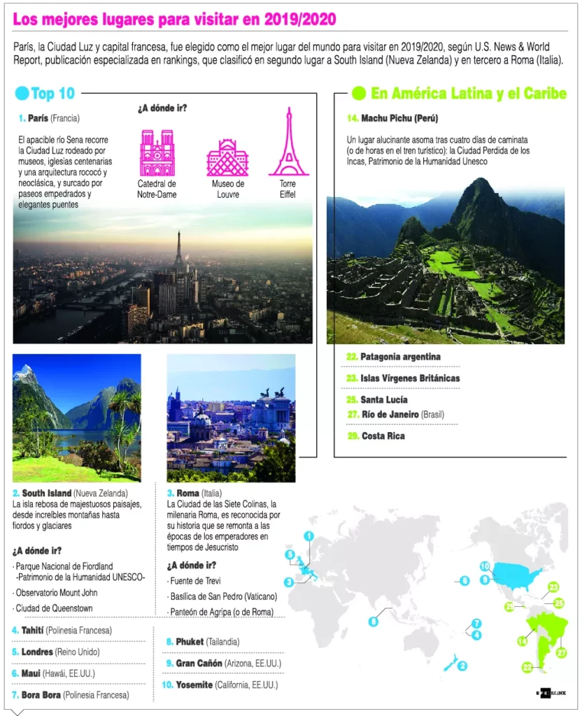 Usando una metodología que toma en cuenta el análisis de expertos y las opiniones de los usuarios, más las evaluaciones de los editores de todo tipo, desde comida y cultura hasta lugares de interés y accesibilidad, “U.S. News & World Report” (Las Noticias de los Estados Unidos) determinó los mejores lugares del mundo para visitar en 2019-20.