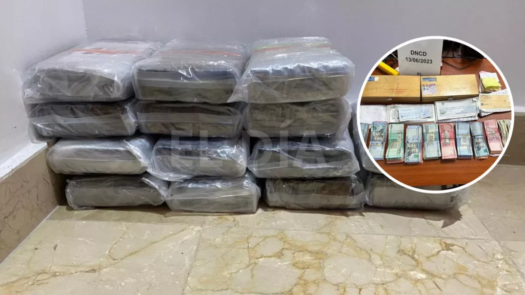 Durante la intervención en el distrito municipal Cenoví, en San Francisco de Macorís, fue detenido Daniel Alfredo Paulino Cáceres, a quien se le ocuparon 14 paquetes de cocaína, con un peso de 16 kilos; también, una pistola marca Glock, 9 milímetros, la suma de $994,000 pesos (novecientos noventa y cuatro mil) y 3,127 dólares estadounidenses en efectivo, en tanto permanece prófugo de este allanamiento el importante miembro de la red, Kelvin Manuel Concepción López (el Menor).