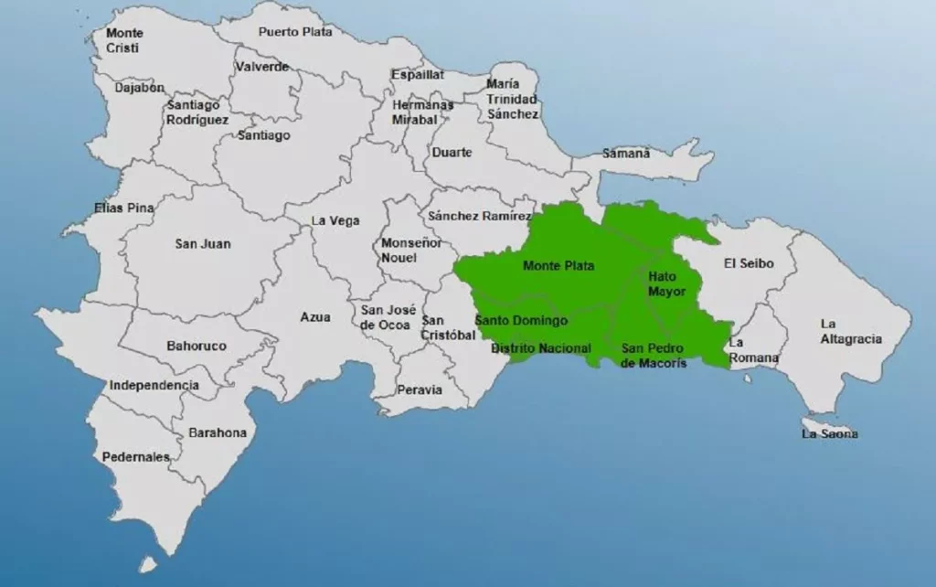 Las provincias del Gran Santo Domingo, Monte Plata, San Pedro de Macorís y Hato Mayor, en la región Este.