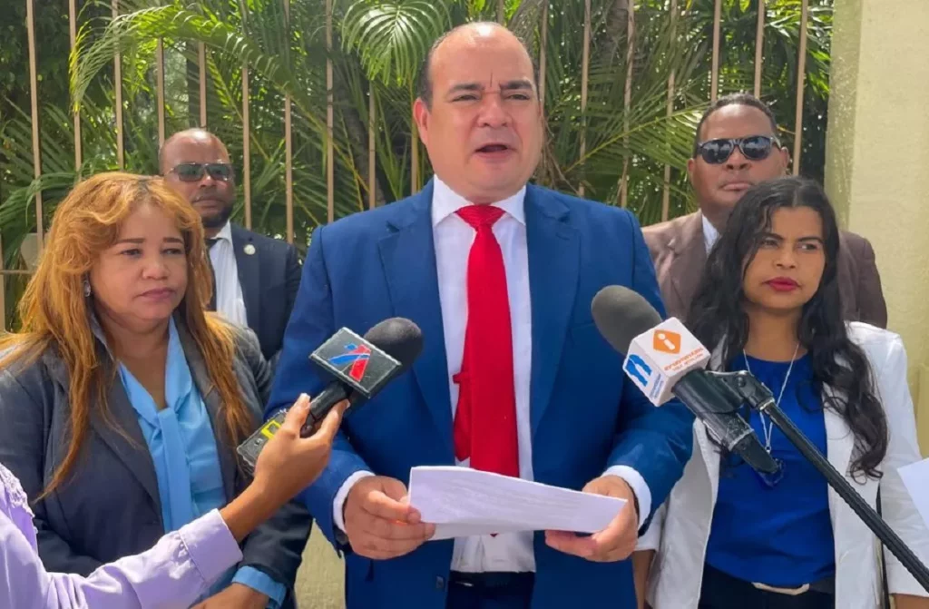 Surún Hernández habló en la parte frontal del Congreso Nacional donde estuvo acompañado de la secretaria de organización del CARD, Lucia Florentino y de otros miembros de la Comisión Ejecutiva de la entidad.