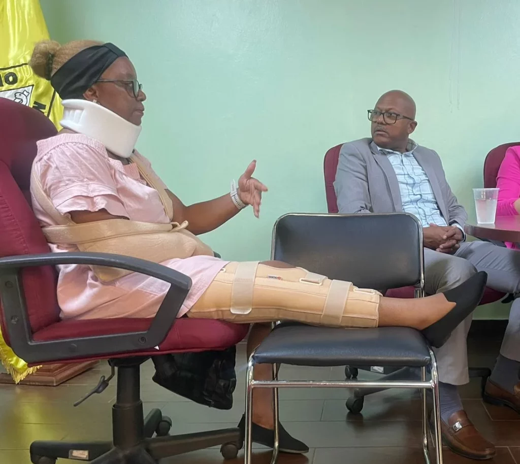 Con fracturas en su pierna y brazo derecho, así como en su cuello, cubiertas por vendajes, se encontraba la doctora Yahayra Ortiz, quien ahora no solo tiene daños físicos sino también emocionales.