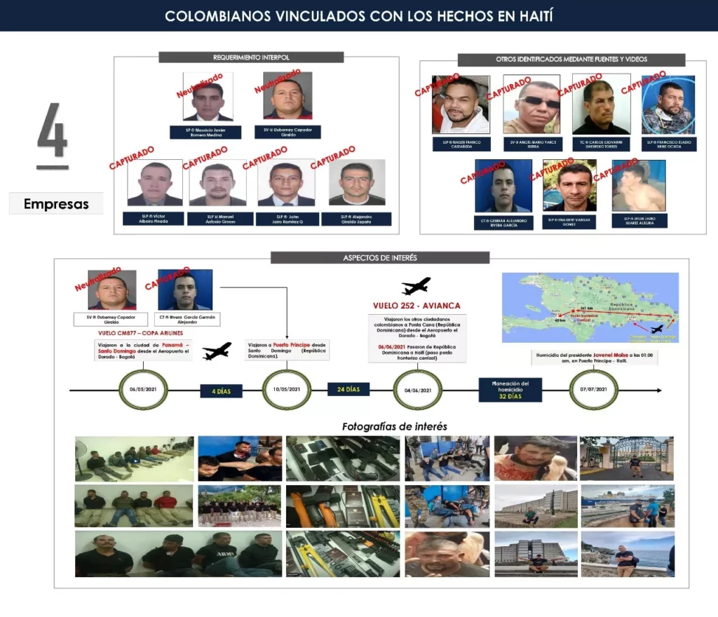 El director de la Policía, general Jorge Luis Vargas, aseguró este viernes en una rueda de prensa que están indagando sobre cuatro compañías, “si es que existen”, porque habrían hecho “el reclutamiento, la agrupación de estas personas” y organizaron los viajes a República Dominicana, desde donde llegaron a Puerto Príncipe.