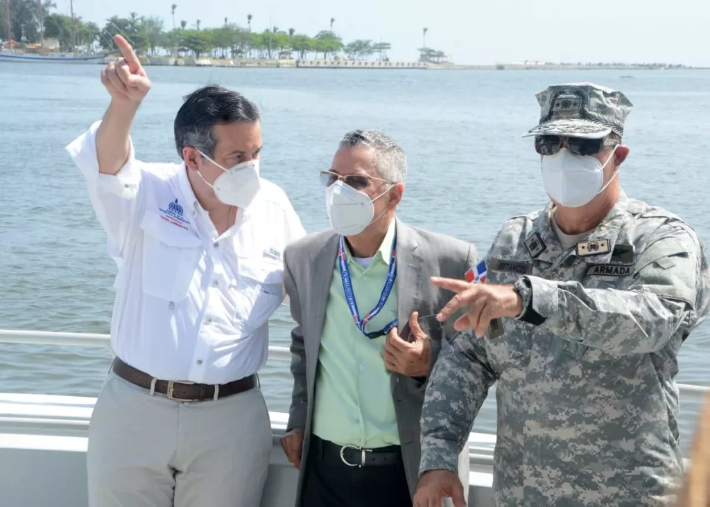 Durante su travesía, visitaron el dispositivo Interceptor 004, equipo con el cual se ejecutan labores de limpieza, saneamiento y mantenimiento con sus operaciones de recolección de plásticos y arbustos de los denominados lila, desechos, entre otras cosas que normalmente arrastran la corriente del rio Ozama al mar.