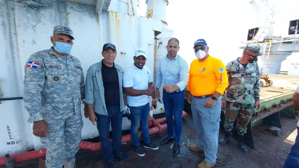 Manzanillo, Pepillo Salcedo.- Una comisión de representantes de los Países Bajos junto al vice-ministro de áreas Costeras y Marinas, José Ramón Arias visitó la embarcación abandonada en septiembre del 2018 cerca del muelle de Manzanillo.