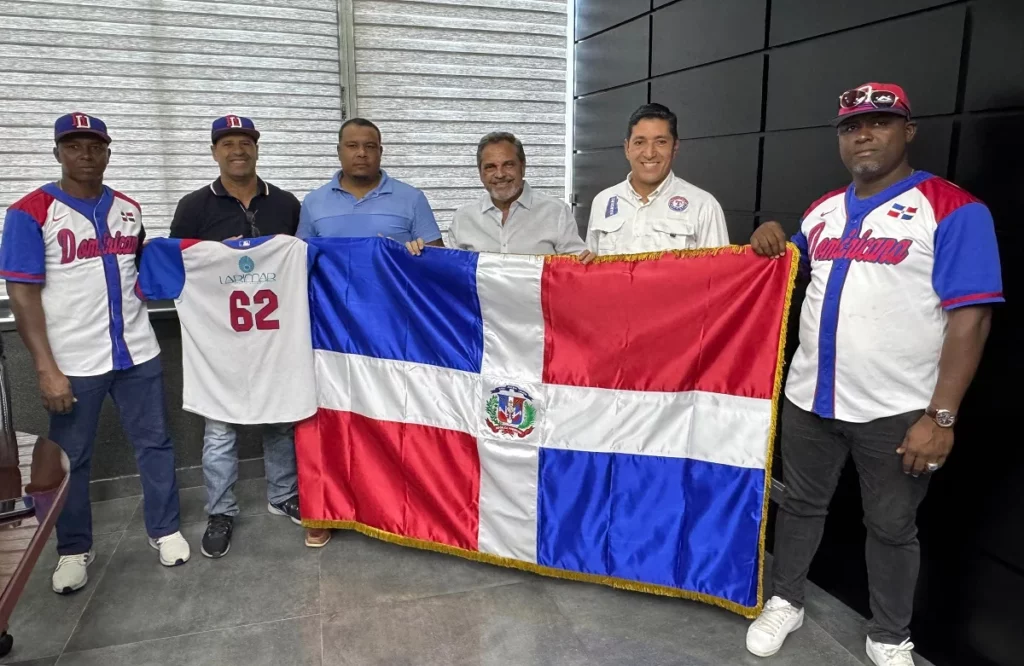 El Comisionado Nacional de Béisbol, Junior Noboa, entregó la bandera nacional este miércoles al equipo que representará al país en el Campeonato Nacional de Béisbol Viejas Gloria que se celebrará en Florida, Estados Unidos.