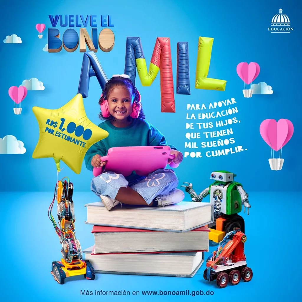 Santo Domingo. – El Ministerio de Educación de República Dominicana (Minerd) informó que a partir del jueves 15 de agosto del año en curso inicia el desembolso del “Bono a Mil por la Educación", que beneficiará alrededor de dos millones de estudiantes del sistema educativo público preuniversitario.