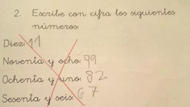 "Escribe con cifras los siguientes números", le pidieron al niño en un ejercicio escolar. Y sus respuestas fueron estas: