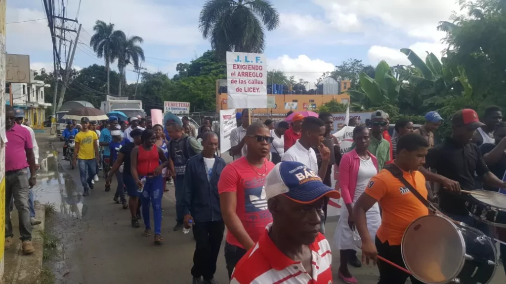 Santo Domingo.- Decenas de personas de Licey, en San Felipe de Villa Mella, marcharon la mañana de este jueves hacia la Alcaldía de Santo Domingo Norte en reclamo de que las autoridades locales cumplan la promesa de arreglar las calles del sector.