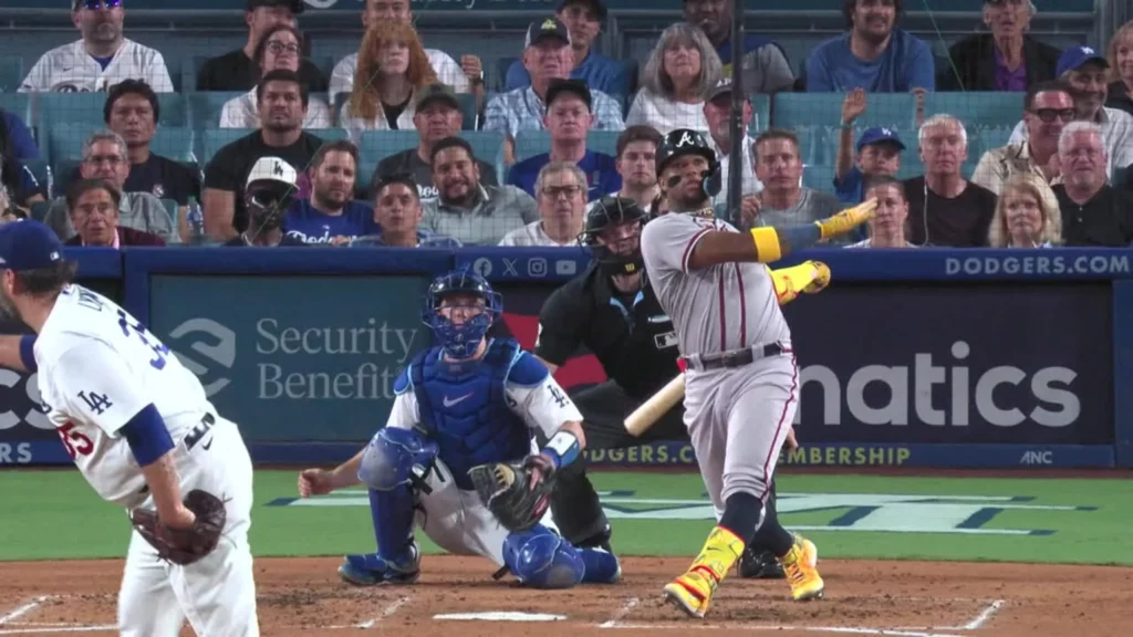 El cuatro veces All-Star de los Bravos y candidato al JMV de la Liga Nacional conectó un grand slam en la segunda entrada de la dramática victoria de Atlanta por 8-7 sobre los Dodgers la noche del jueves en el Dodger Stadium para convertirse en el primer jugador en la historia de la Liga Americana y la Liga Nacional en sumar 30 o más jonrones y 60 o más robos en una temporada, justo un día después de robarse dos sacos para unirse al club de los 20-60.